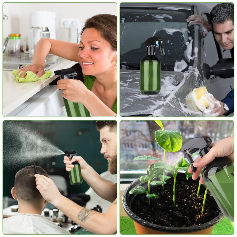 4. Vielseitig und Wiederverwendbar:Diese Sprühflaschen sind ideal für eine breite Palette von Anwendungen – von Pflanzenpflege über Reinigung bis hin zu Haarstyling. Das transparente Design ermöglicht die einfache Kontrolle des Flüssigkeitsstands, während das moderne Braun-Grün-Design UV-Schutz bietet.