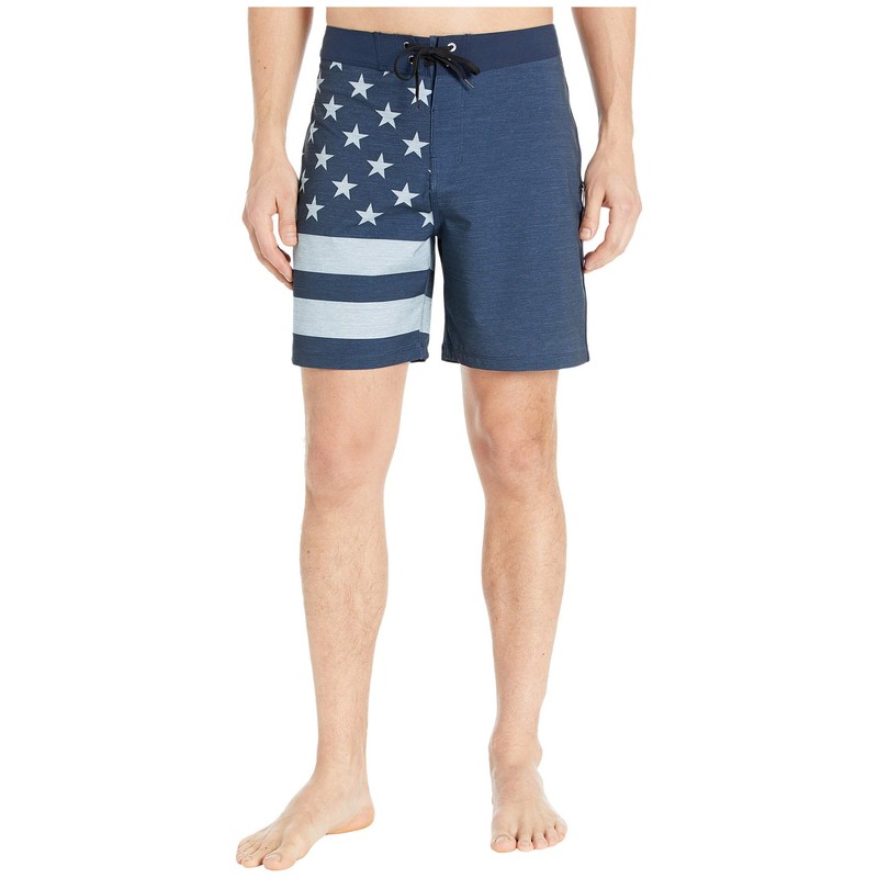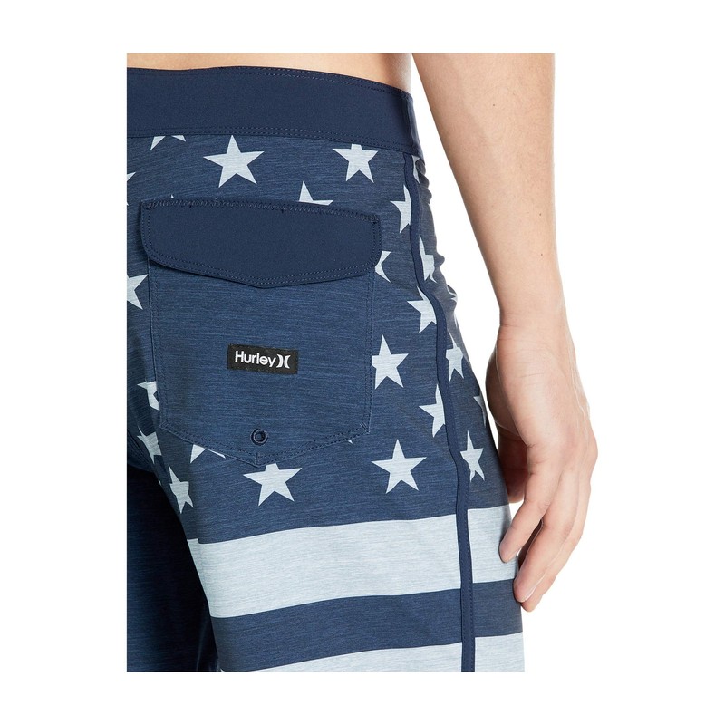 Move freely through the water thanks to the Hurley Phantom Patriot 18" Boardshorts. These surf-ready boardshorts have a rear patch pocket, an easy drawcord waist, and an American flag motif all over.