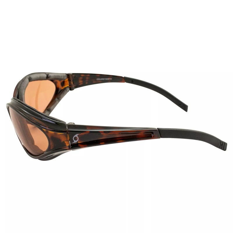 Rock it like a hurricane with these Cyclone classic sport wrap motorcycle riding glasses. The traditional design provides great protection and a wide field of vision. The Cyclone is constructed of a high quality polycarbonate frame that has comfortable rubber ear tips. The padding is a vented EVA foam that allows adequate ventilation while keeping your eyes protected from the rushing wind. The UV400 lenses offer protection from the harmful UV rays of the sun. The lenses are anti-fog ensuring crisp and clear vision out in the elements. The shatterproof polycarbonate lenses keep your eyes safe, giving you maximum protection. For your convenience, the Cyclone comes with a microfiber pouch for safe cleaning and storage.