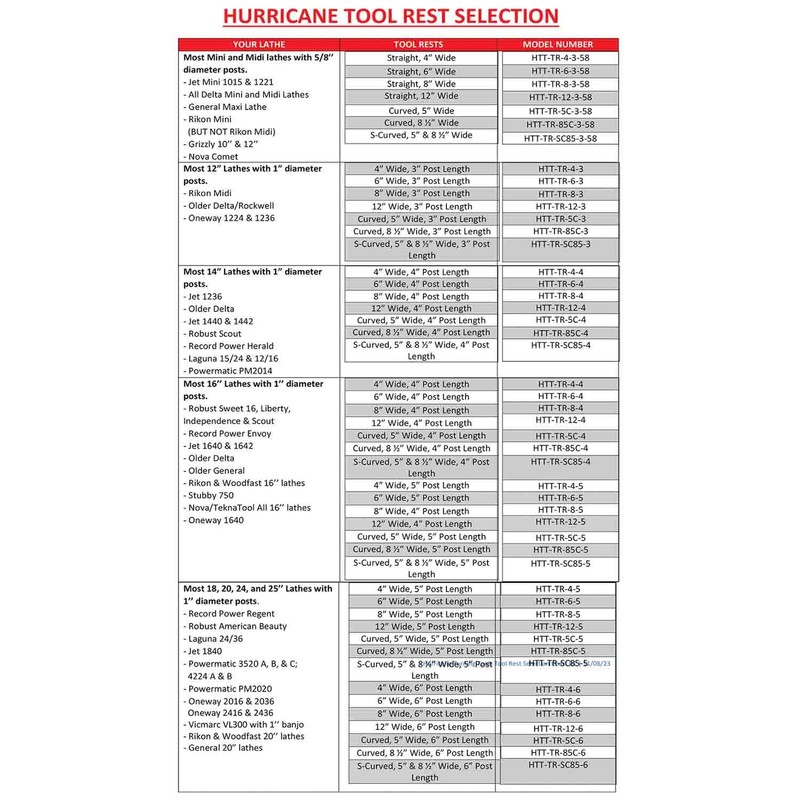 Tool rests from Hurricane Turning Tools are available in a wide variety of sizes, shapes and styles to help you tackle virtually any project on your wood lathe! With a wide range of post sizes available, we have tool rests to fit almost every wood lathe model.