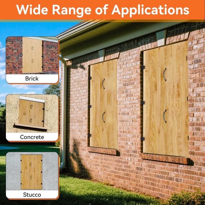 • Fast Setup: Hurricane window clips for plywood fit 1/2" plywood. Just pre-cut the wood to your window size, press it firmly into place, and the strong wedge design locks it down securely—great for brick, concrete, and stucco frames