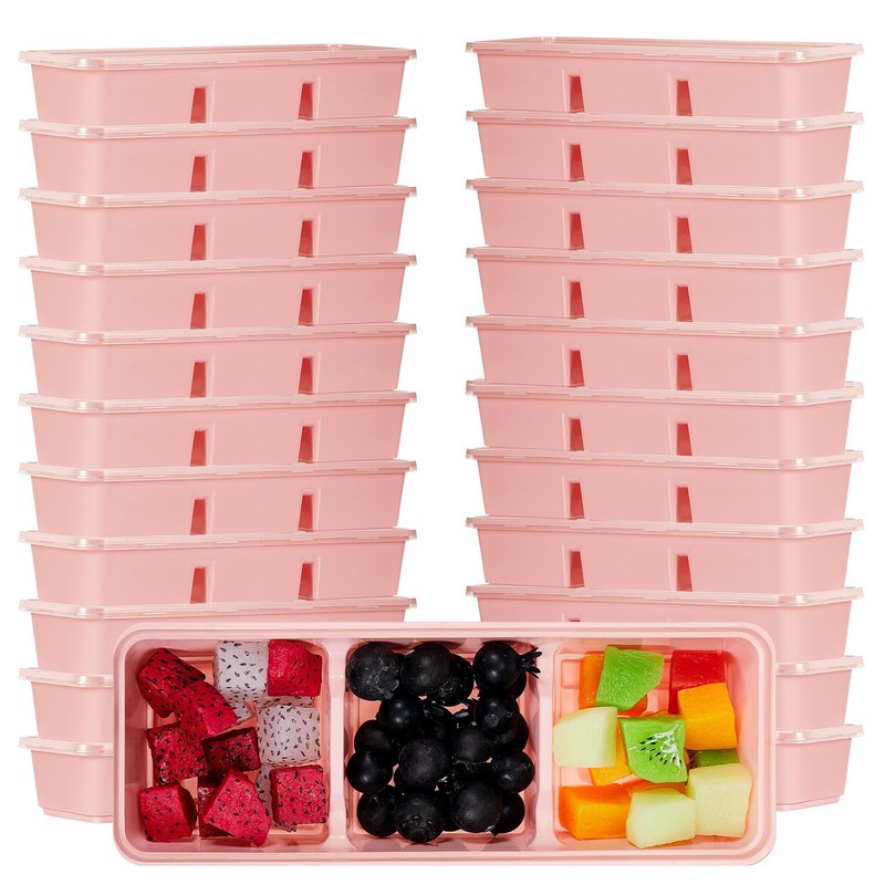 Hushee 10 Pack 17 oz Small Meal Prep Containers with 3 Compartments Snack Containers with Lid Disposable Plastic Bento Box Travel Lunch Food Boxes Stackable for Office Picnic (Pink)