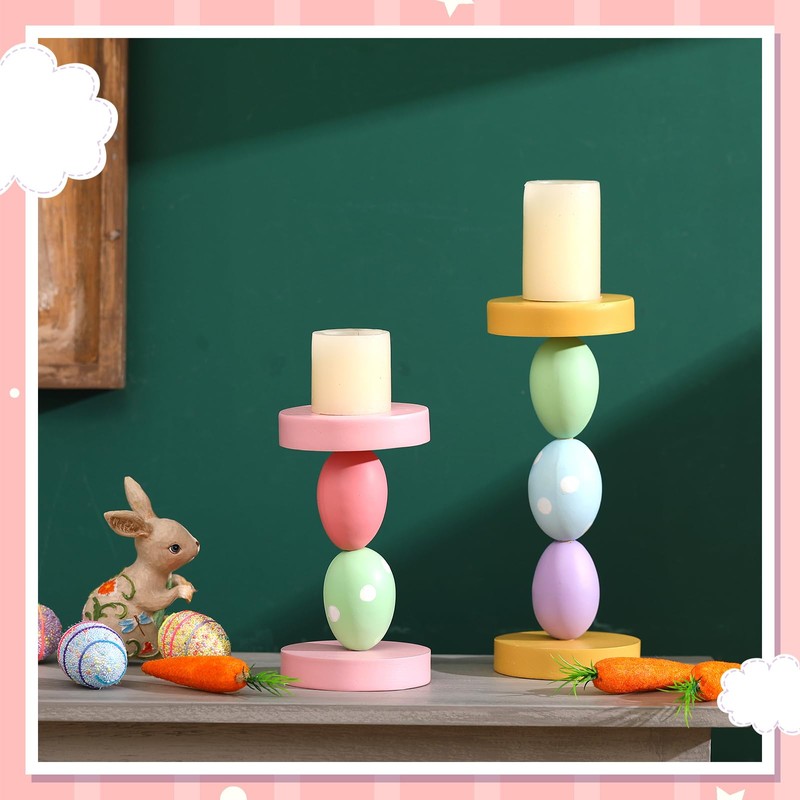• Quality Material and Vibrant Aesthetics: crafted with the quality resin eggs, wooden discs and sticks, these Easter eggs candle holders provide an ideal blend of durability and visual appeal; Their vibrant colors and beautiful design capture the festive spirit of Easter, adding a bright touch to any room
