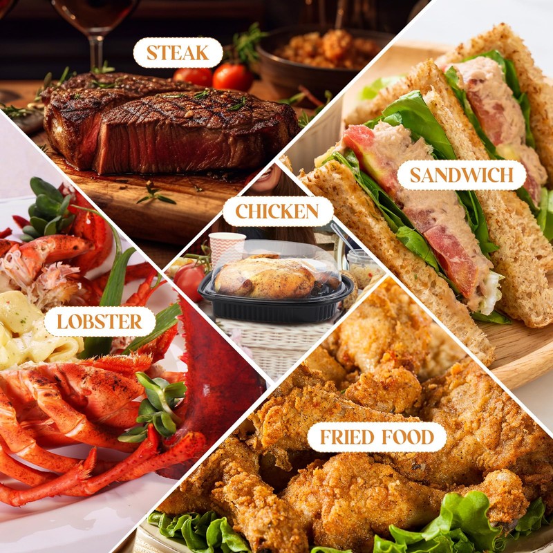 - Easy to Use: this black plastic chicken food storage container is easy to use, easy to carry, easy to clean, and stackable, just put the meat in; The chicken container design evenly distributes heat, cover the lid, and you can cook, the quantity is sufficient and easy to replace; If you want to reuse it, you can wash it manually, but it cannot be put into the dishwasher