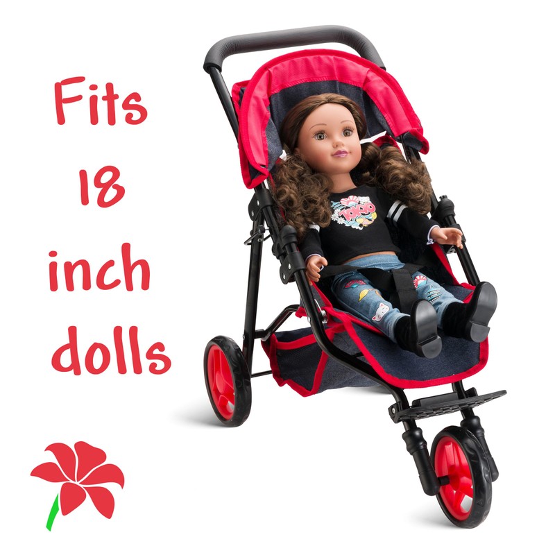 Baby Doll Stroller for Dolls - Jogger Toy Doll Stroller for Toddlers 3 Years and up, Adjustable Canopy & Storage Basket, Denim Design for Kids