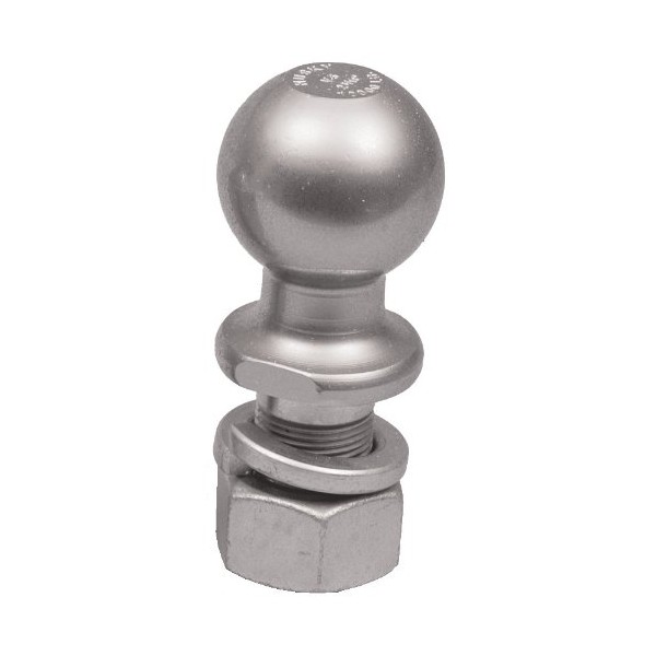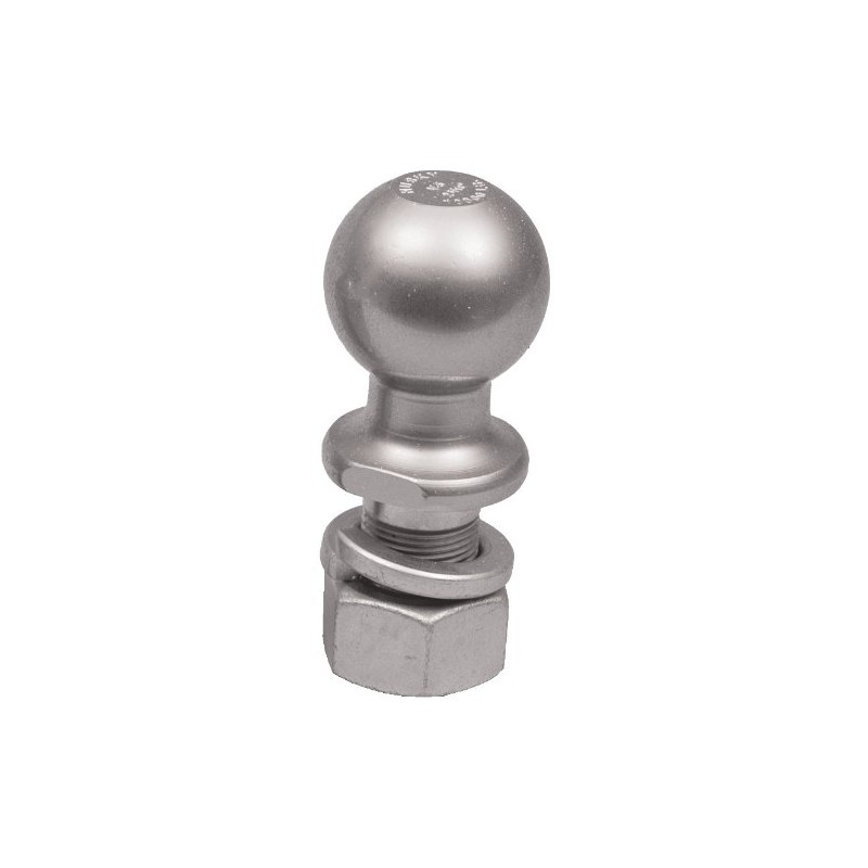 Manufactured from a single piece of solid steel with various shank lengths to accommodate a variety of ball platform thicknesses. Rated from Class I to Class IV with varying gross towing loads up to 17,000 pounds.‡ Includes lockwasher and nut. Follow these easy steps to properly determine the correct trailer ball for your application: A. Determine Ball and Coupler Size — Most couplers are stamped with the required trailer ball size. The sizes you'll most likely find stamped in the coupler are: Class I, 1-7/8 inch; Class II, 2 inch; Class III, 2-5/16 inch. B. Gross Trailer Weight (GTW) — Select the appropriate trailer ball to match or exceed the Gross Trailer Weight rating of the trailer. C. Match the trailer ball shank to the ball platform thickness and hole size — when mounted in the ball platform, the threaded ball shank must protrude beyond the bottom of the lock washer and nut at least two threads. D. Hole Size — the trailer ball shank must be matched to the platform hole diameter size. Standard hole sizes are: Class I: 3/4 inch diameter; Class II: 3/4 inch diameter; Class III/IV: 1 inch diameter; Weight Distribution: 1-1/4 inch diameter.