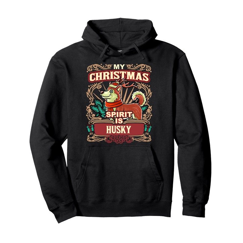 Husky My Christmas Spirit Dog Santa Claus Elf Reindeer Pullover Hoodie