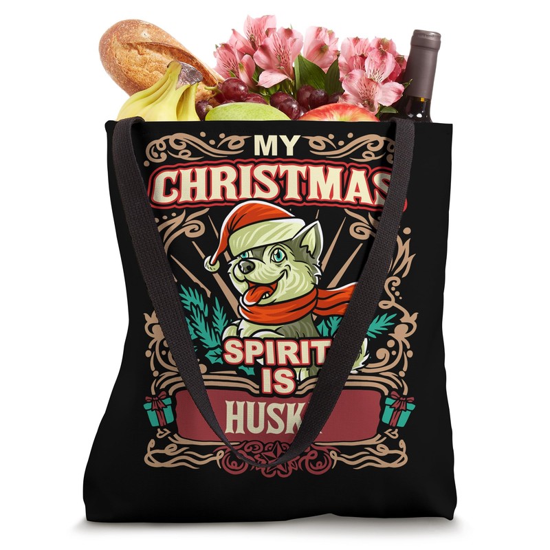 Husky My Christmas Spirit Dog Santa Claus Elf Reindeer Tote Bag