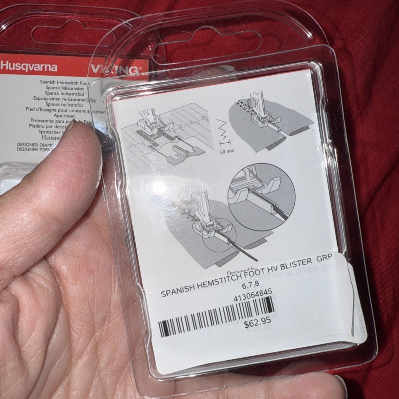 The Husqvarna Viking Spanish Hemstitch Foot is a high-quality sewing accessory designed specifically for use with Husqvarna Viking sewing machines. This foot allows for precise hemstitching, providing a professional finish to your sewing projects. Made by a trusted brand in the crafting industry, this foot is a durable and reliable tool for adding intricate stitching details to your garments or other crafting projects.