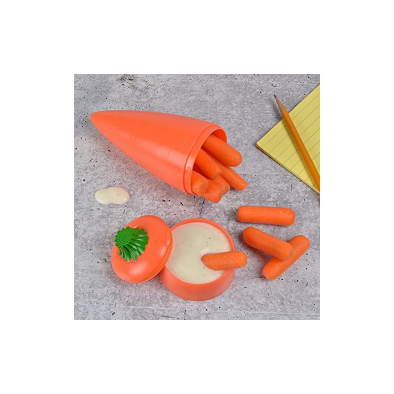 • Includes carrot container and leak-proof dip container with lid that all stack together