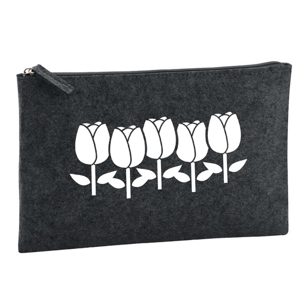 Huuraa Toiletry Bag Tulips Flower Gift 1 Litre Charcoal Felt Tulips Gift Idea