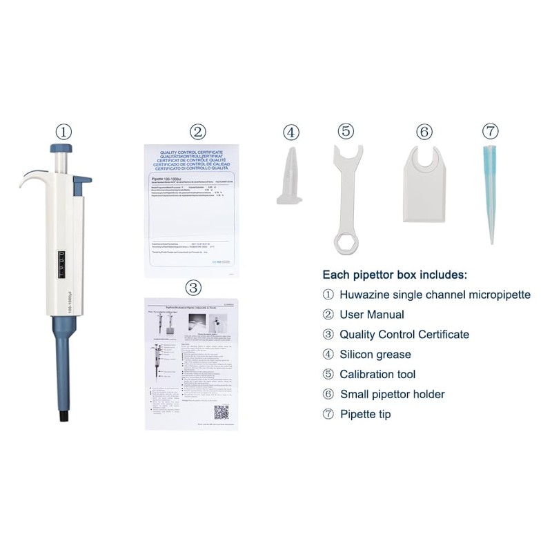- Highly Accuracy: All Huwazine pipettors are calibrated in accordance with ISO8655. Each pipette supplied with individual test certificate. These pipettes are easy to calibrate and maintain with supplied tool.