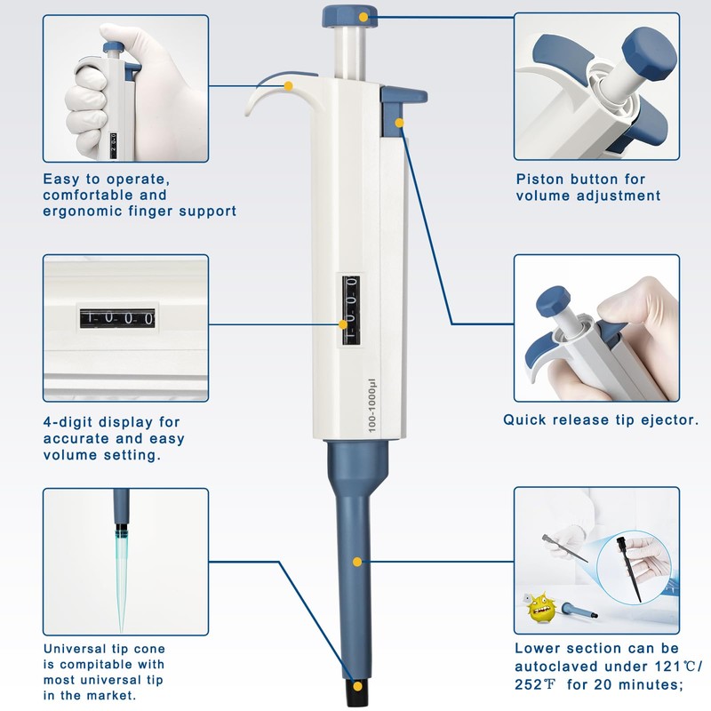 - Volume Range: Huwazine Micropipette kit SC includes: single channel micrepipette 0.5-10l*1 piece, 10-100l*1 piece, 100-1000l* 1 piece. Total volume range covers 0.1l ~ 10ml. The universal type tip cone accept to fit most brand of pipette tips in the marekt.