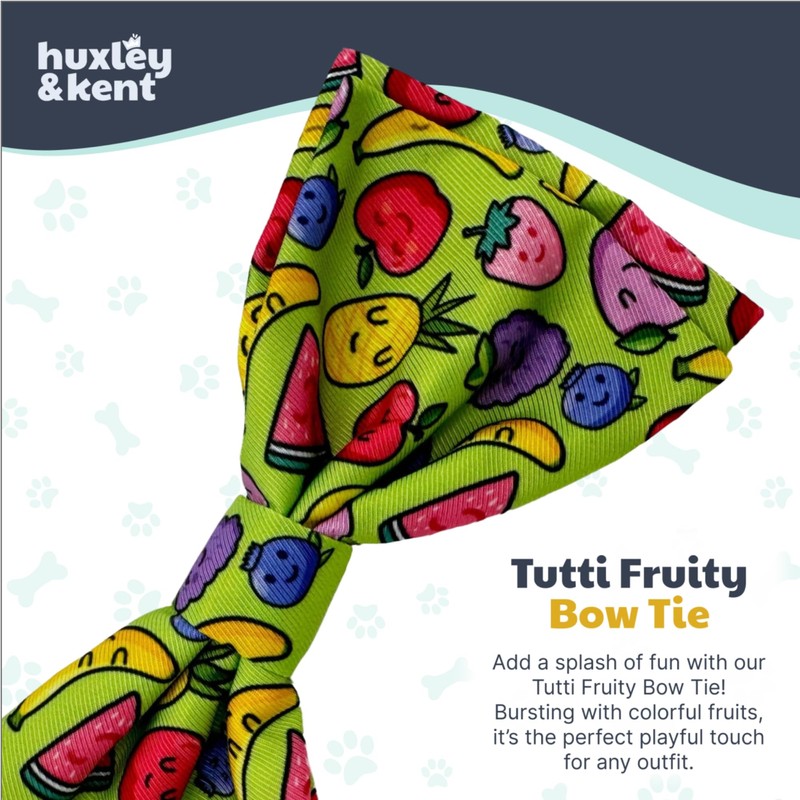 Huxley & Kent Pet Bow Tie for Dogs & Cats - Adjustable Hook & Loop Collar Accessory - Cute & Comfortable for Holidays & Celebrations - Tutti Fruity, Large