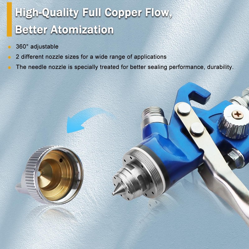HVLP Air Gravity Spray Gun Set, Aflybltol 2 Pcs Sprayer Paint Gun Kit,1.4mm 600ml&0.8mm 125ml Automotive Paint Gun with Locking Air Pressure Regulator Gauge Paint Sprayer Gun for Car Painting(Blue)
