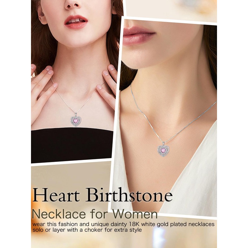 - Heart Pink Tourmaline Pendant - Heart Birthstone Gifts for Women --- This exquisite white gold necklace features a heart-shaped cubic zirconia stone that is 2X bigger than competitors'. As you might expect, the pendant is a big one, not in dainty style. However, the recipient will not be disappointed, as the actual necklace is truly captivating.