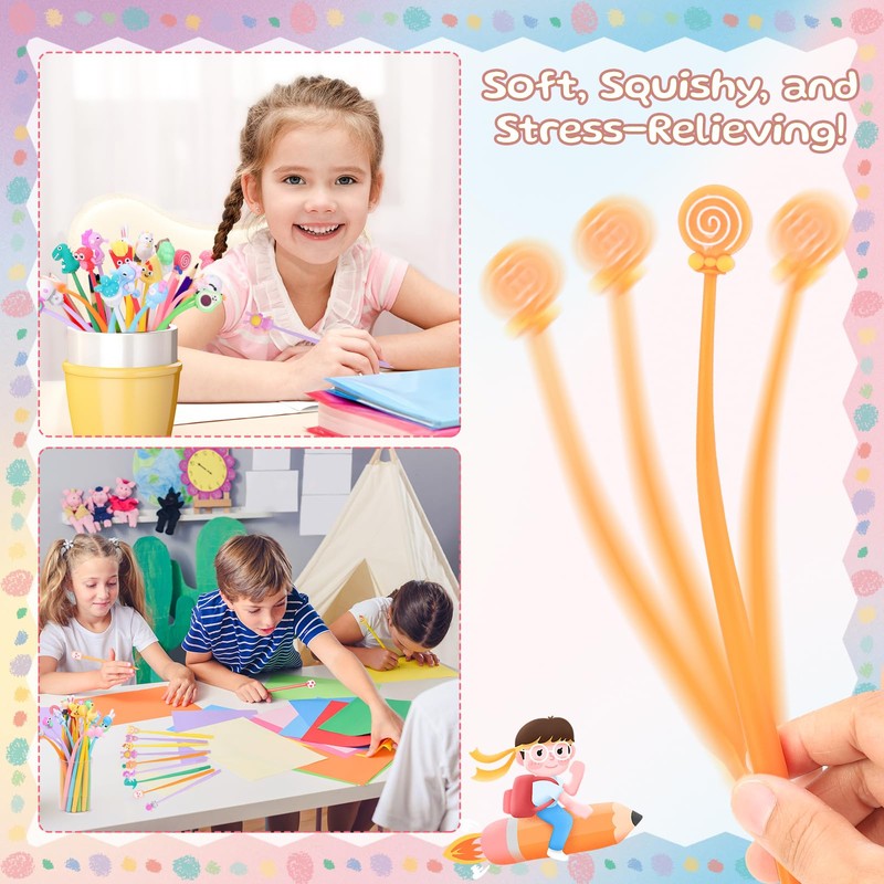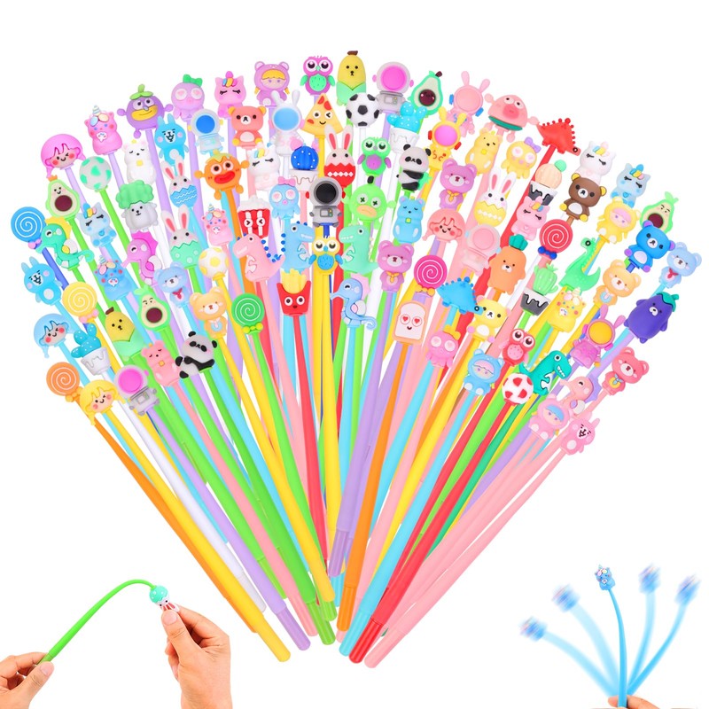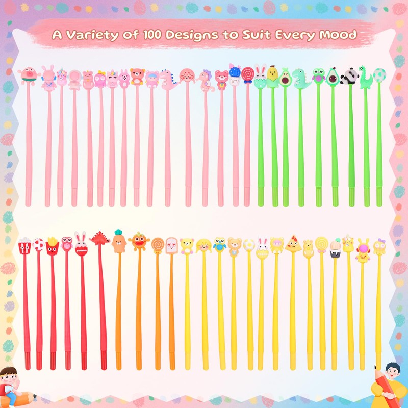 - 【100 Styles Squishy Pens】: You will receive 100pcs silicone squishy pens bulk in 100 different character toppers, cute and fun, bright color and sufficient quantity for daily use, sharing and meet different needs