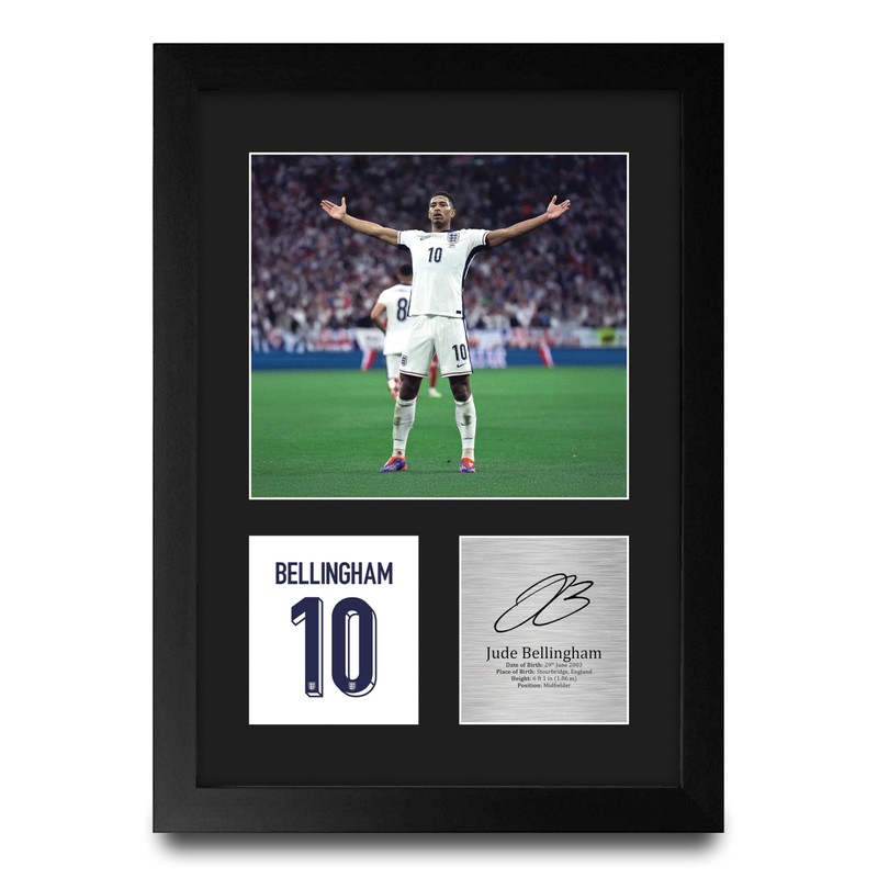 HWC Trading Jude Bellingham England Gifts Printed Signed Autograph Picture for Football Fans and Supporters - A4 Portrait Framed