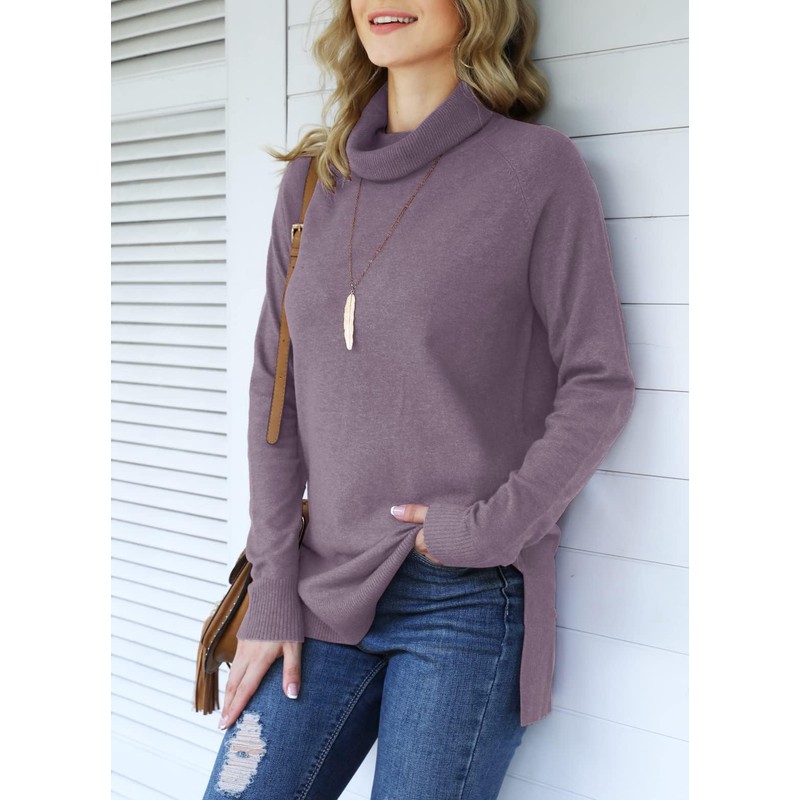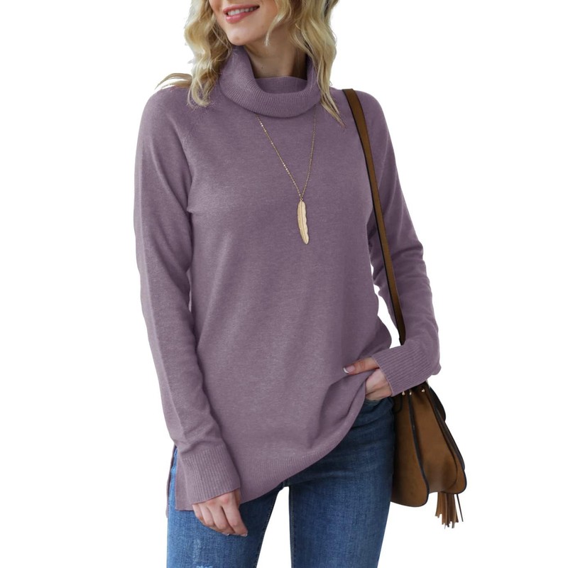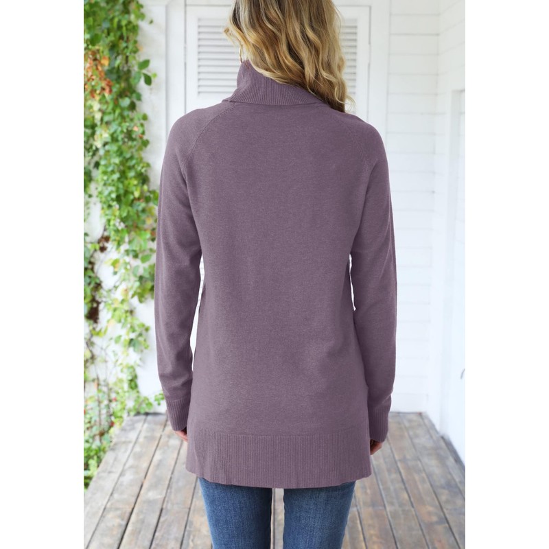 HWOKEFEIYU Turtleneck Sweater Pullover Lightweight Long Sleeve Sweaters for Women (Gray Purple,Small)