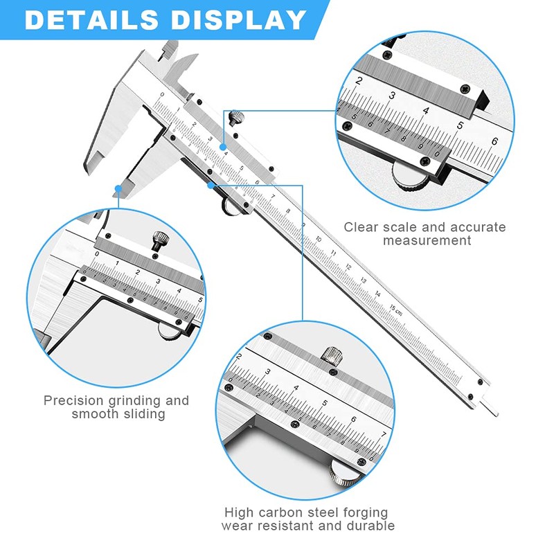 2. The Vernier Caliper Gauge 150mm is made of stainless steel, strong and durable, not easy to rust.