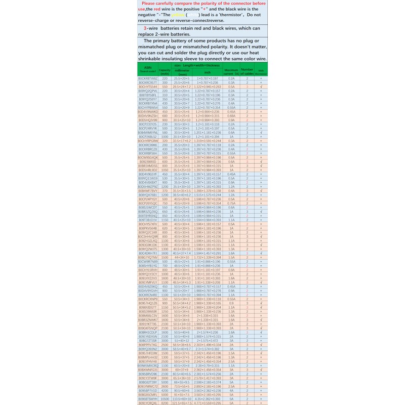 - Please carefully compare the polarity of the connector before use,★the red wire is the positive "+" and the black wire is the negative "-",Do not reverse-charge or reverse-connectreverse. ★The primary battery of some products has no plug or mismatched plug or mismatched polarity. It doesn't matter, you can cut and solder the plug directly or use our heat shrinkable insulating sleeve to connect the same color wire.