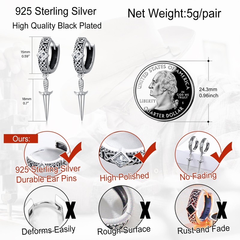 - 【925 Sterling Silver & Vintage Longsword】: The earrings are mainly made of 925 sterling silver, which is hypoallergenic and safe for sensitive skin, so you can wear them with confidence. The vintage longsword design shows the strength and courage of the Viking warriors and makes you stand out from the crowd.