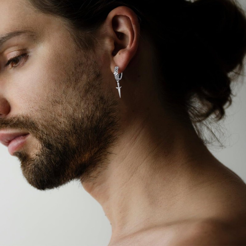 - 【Design Inspiration】: This 925 sterling silver hoop earrings for men is inspired by ancient Viking culture and contains elements of a vintage longsword symbolizing power and faith. It pays homage to the indomitable spirit of Viking warriors and gives you strength for every challenge you have to face.