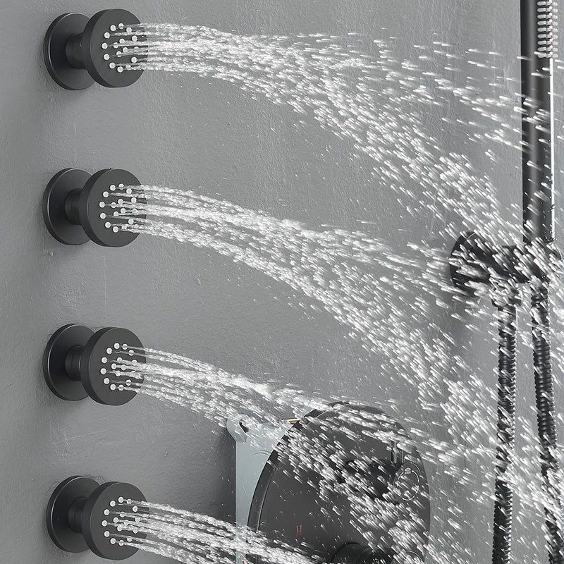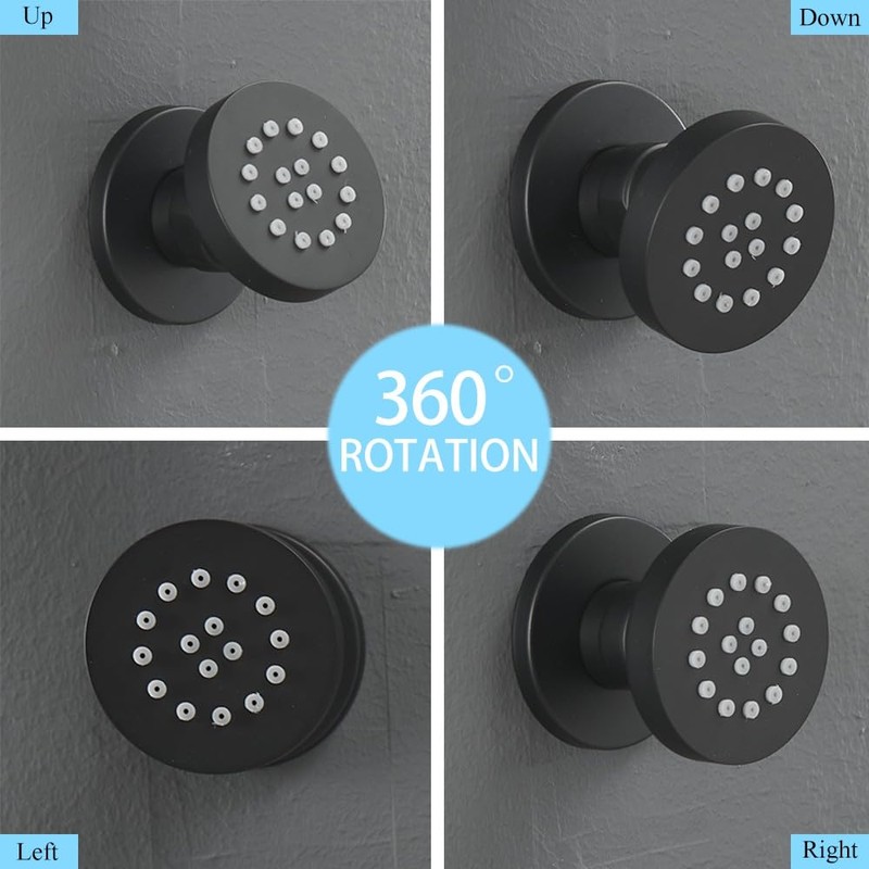 HXYHS Brass Shower Body Jet Matte Black Round Massage Side Sprayer Adjustable...