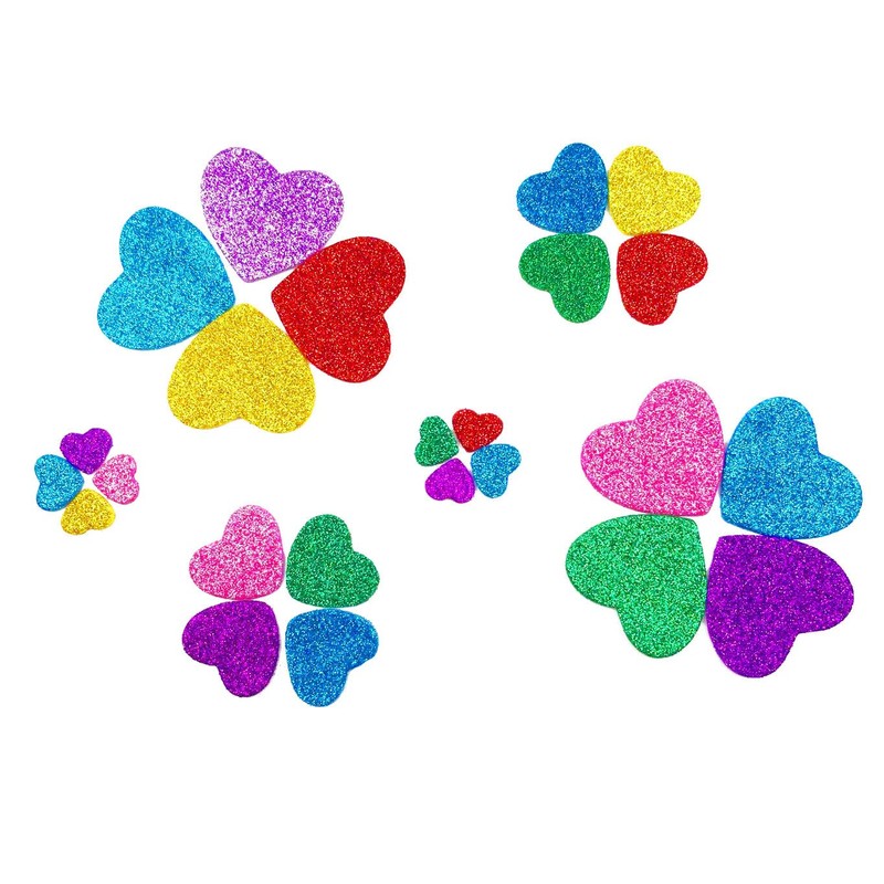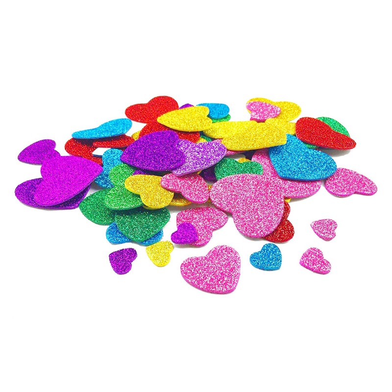 Glitter heart foam stickers Color: random Minimum size: 17*15mm Maximum size: 47*45mm Weight for per pack: approx 7g Great for scrapbooking, greeting cards, kids'craft project, classroom decoration, etc