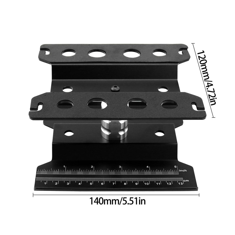 - 360 degree rotation; adjustable height, free to rotate or lock; built-in hole for rebuilding shock absorbing chassis has scale to measure the length of parts