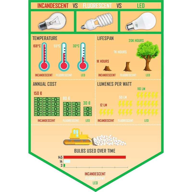- 【Energy Saving】LED lighting consumes much less energy than conventional lighting, which can save 85% on electricity bills. Annual electricity costs can drop from €1,000 to €150 with LED lighting.