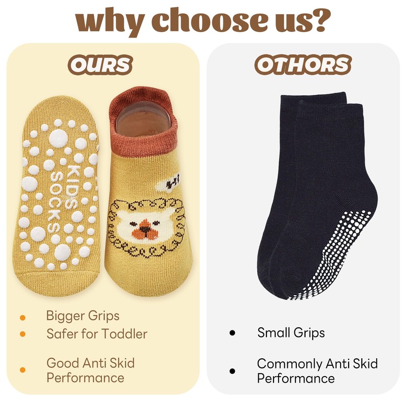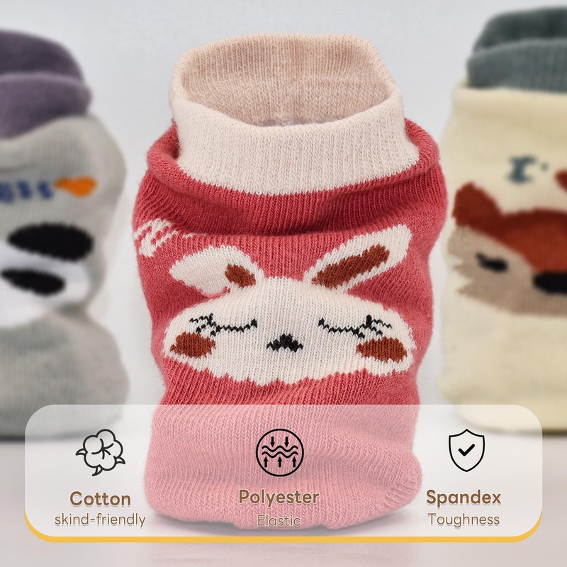 - All-Season Wearability: Non-irritating, no pilling, no-color fading tech, breathability and softness for baby's feet. Medium-thick baby anti-slip socks for all seasons, with or without shoes. Soft cotton material is perfect for growing infant