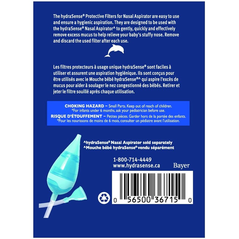 - Single-use protective filters are designed to be used with the hydraSense Nasal Aspirator to gently, quickly and effectively help relieve your baby's stuffy nose