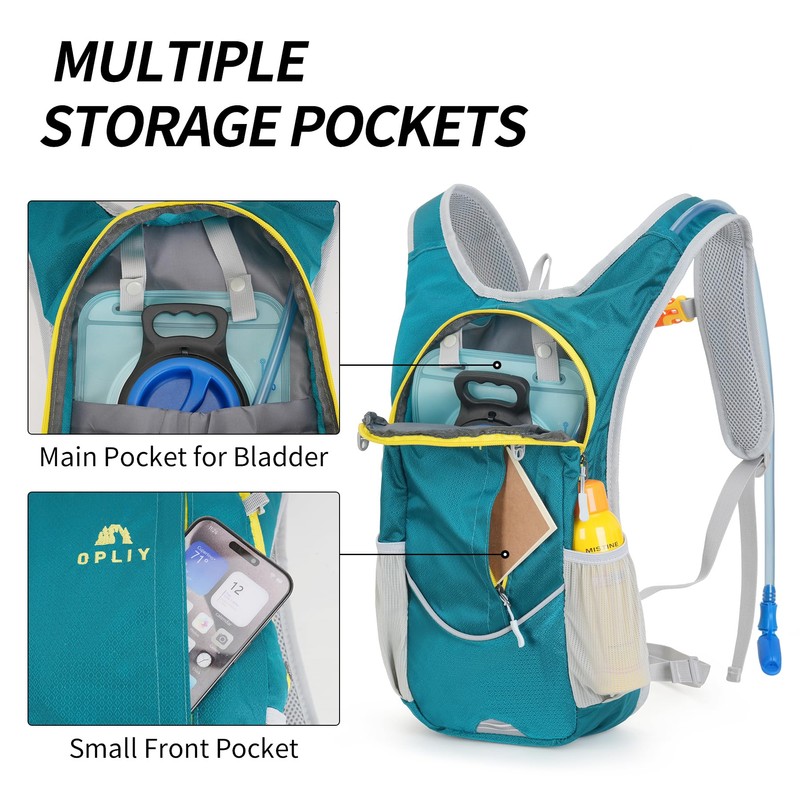 • PROFESSIONAL 2L HYDRATION BLADDER: 2 liters (70 oz) BPA-free Hydration Bladder-The perfect size offer a nice balance of reasonable weight and bulk while providing a sufficient quantity of water.