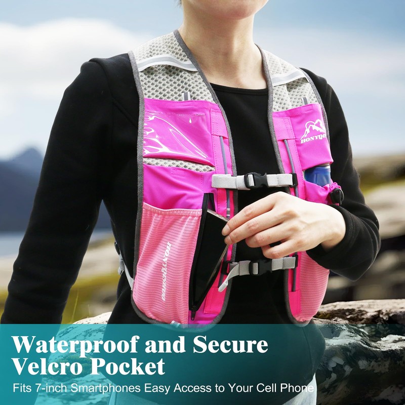 Hydration Vest Pack Backpack, Running Vest for Women Men, Adjustable Chest Straps Running Hydration Vest with 500ml Soft Flask, Running Vest for Trail Running Hiking (Rose Red)