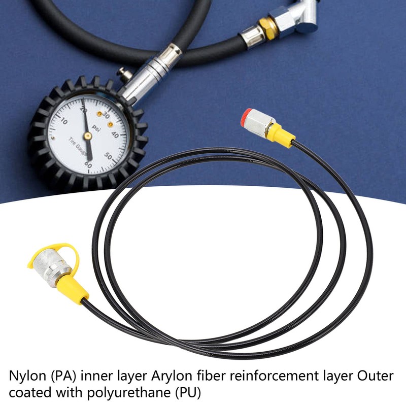 - PREFERRED MATERIAL: The hydraulic test hose has a pressure of 630Bar, the inner layer is nylon (PA), the reinforcement layer is arylon fiber, and the outer coated with polyurethane (PU).
