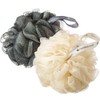 Hydrea London Shower Puffs - Pack of 2 Exfoliating Body Scrubber for Men & Women - Face & Body Cleansing Shower Scrub - Ultra-Soft, Large, & Vegan Bath Scrunchie - Bathing Buffers, Cream & Grey