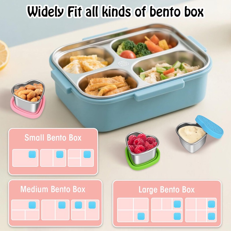 - Portable leak-proof Bento box accessories to go: this perfect size of dip sauce cups is perfect for sauces, dips, spices, jam, salad dressing and other mini snacks. It is the best partner of Bento and Box for Lunch, lightweight, easy to store and carry.