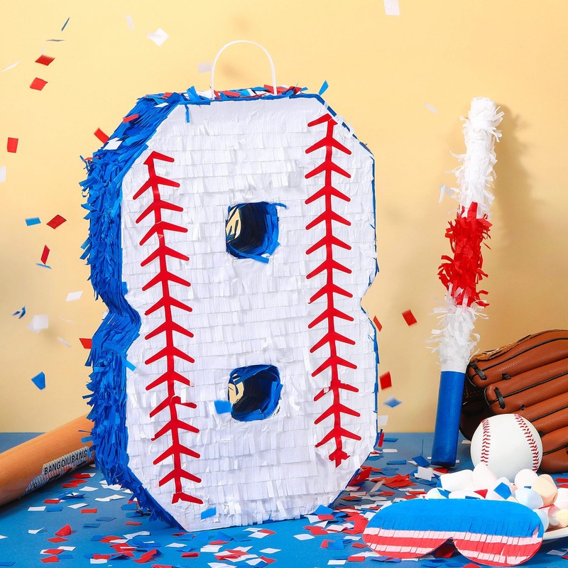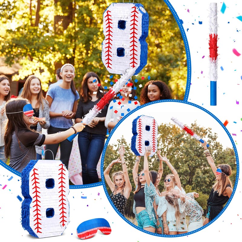 - Baseball Party Decorations: this set includes a baseball number 8 piñata, a stick, an eye mask and a bag of confetti; The rich combination can easily meet the diverse needs of a baseball party; Just make a small cut and you can easily fill the piñata with confetti, or candies, cookies, chocolates, lollipops, snacks (not included); It is very suitable for creating a cheerful sports party atmosphere