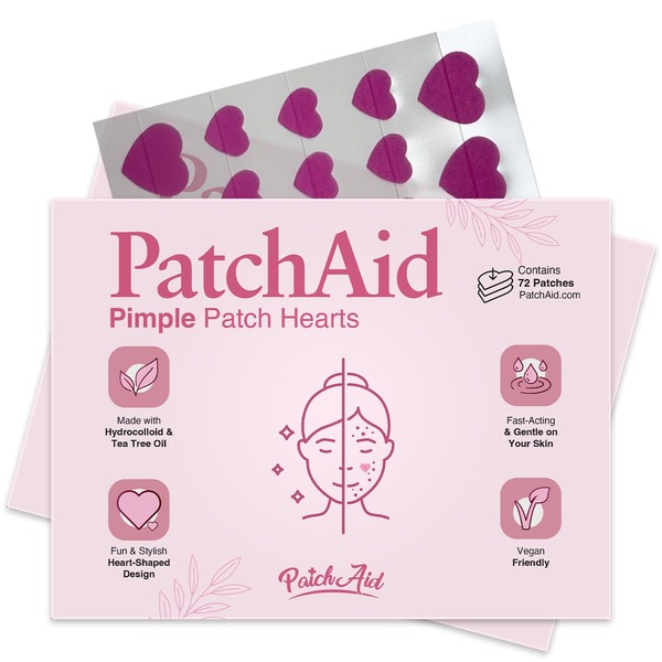 Hydrocolloid Fast-Acting Pimple Spot Treatment Heart-Shaped Patch with Tea Tree Oil by PatchAid (72 Count)