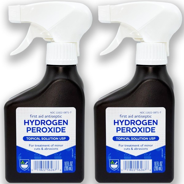 Hydrogen Peroxide 3% Topical Solution, 2 Pack, First Aid Topical Spray, Treats Minor Cuts and Scrapes, Multi Purpose Cleaner and Blood Stain Remover, Safe for All Ages, 10 oz Each