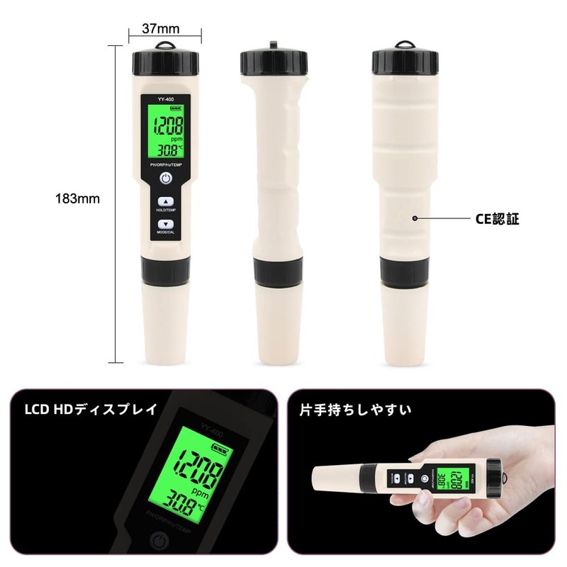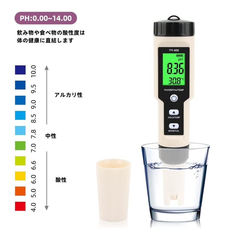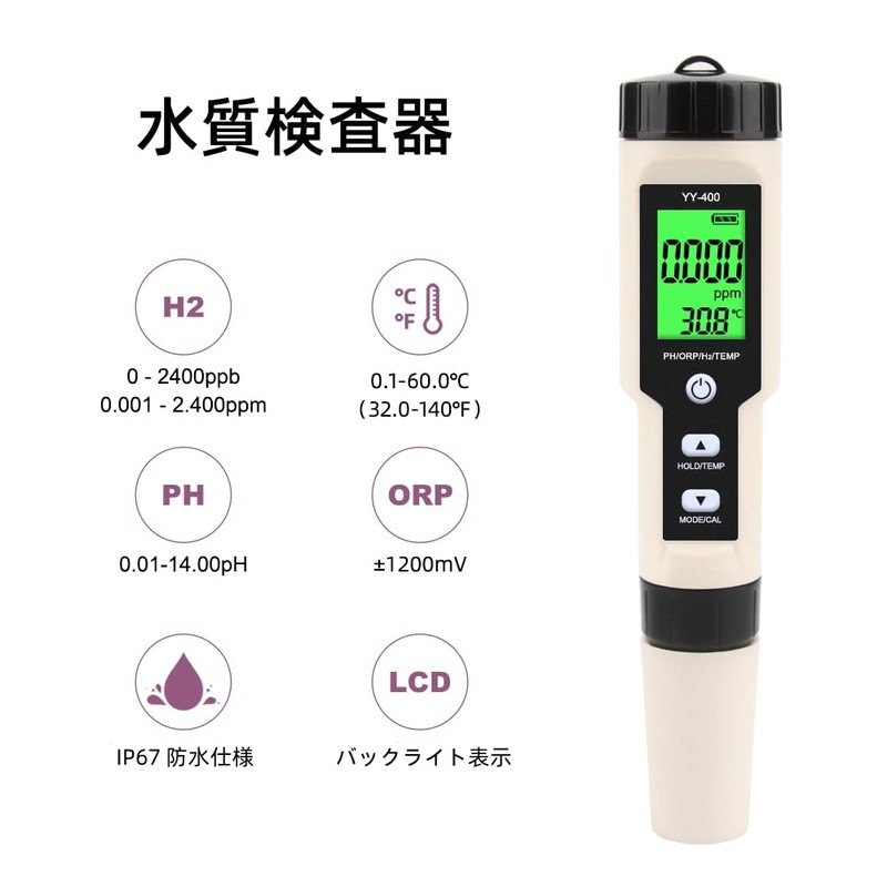 Hydrogen Water 4-in-1 H2 Measuring Instrument, High Accuracy, ORP PH, Temperature Measurement, Hydrogen Gas, Water Quality Inspection, Automatic Temperature Correction, LCD Display, Backlight,