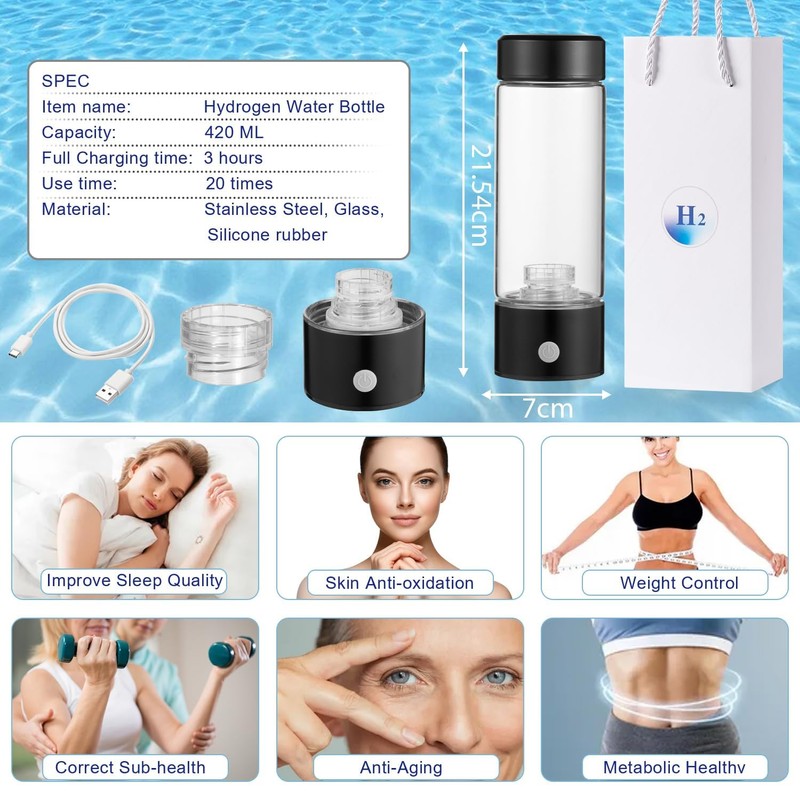 - 🎁 Health Benefits and Ideal Present: Drinking hydrogen-rich water offers numerous health benefits, including improved metabolism, muscle recovery, sleep quality, and reduced oxidative stress. Hydrogen water bottles are a great present for sports enthusiasts, relatives, and friends. suitable for various occasions like birthdays, Thanksgiving, Christmas, and anniversaries.