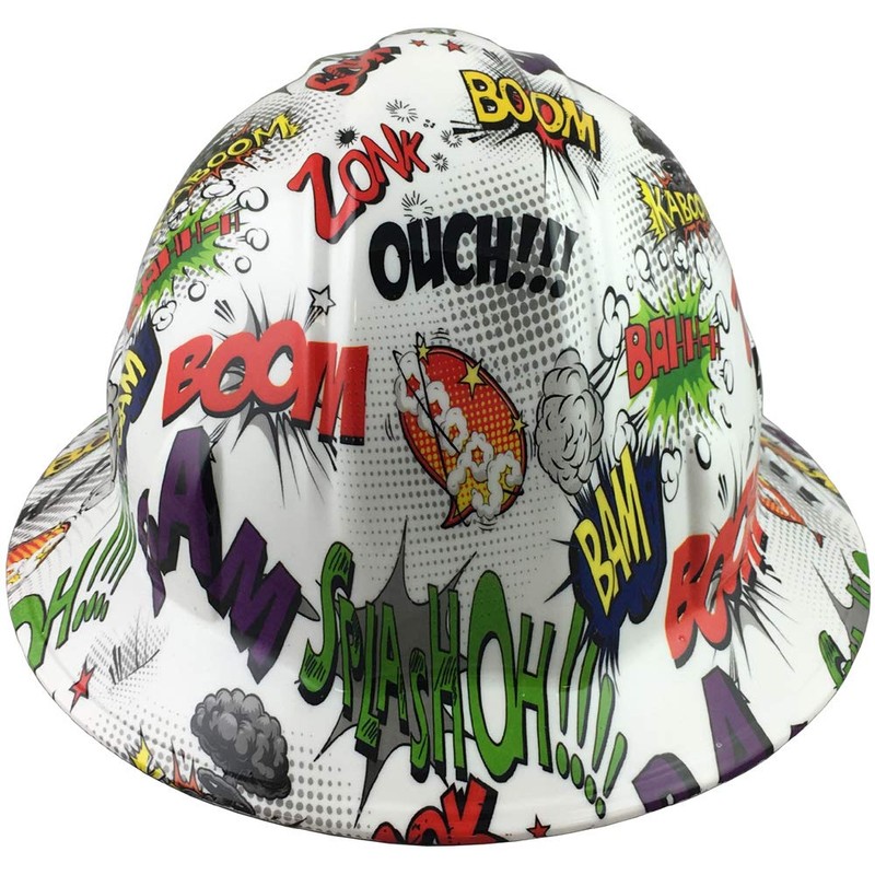 Hydrographic Full Brim Hard Hats with 6 Point Suspension - Comic Book BAM