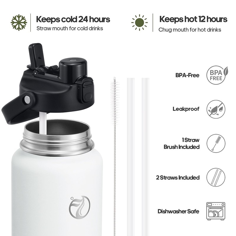 - Loyal companion: Equipped with two 100% leak-proof lids for every need. With the straw lid, you can sip effortlessly leak-proof. The spout lid helps with quick hydration after sports. Ideal companion for all leisure and sports activities.