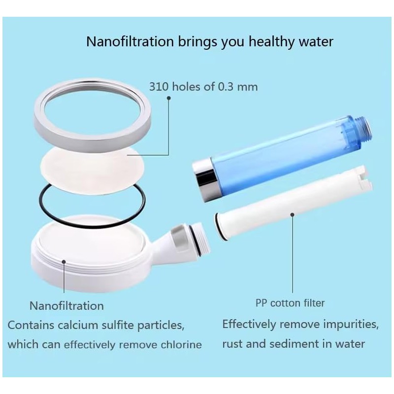 - Vitamin C Infusion & Calcium Sulfite Balls: The built-in Vitamin C infusion and Calcium sulfite balls effectively neutralize chlorine and other impurities, enhancing water quality and promoting healthier skin and hair with every shower.