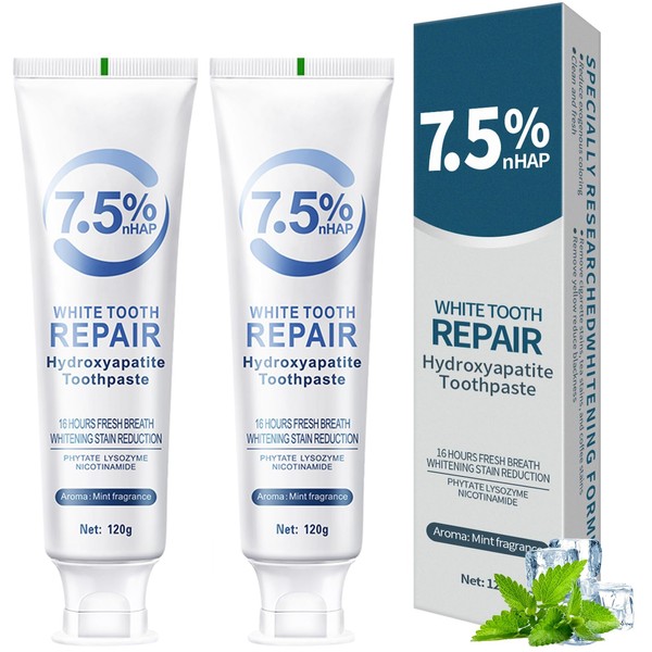 Hydroxyapatite Toothpaste 7.5, Fluoride-Free Toothpaste for Enamel Protection and Tooth Strengthening(2pcs)