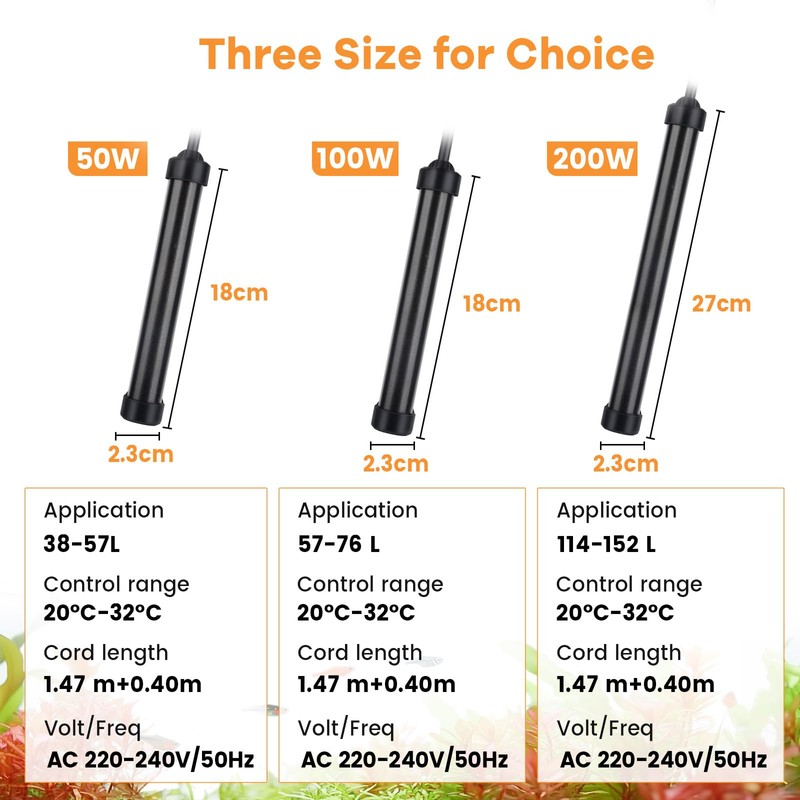 | Size: | 100W for 57-76L Tank |