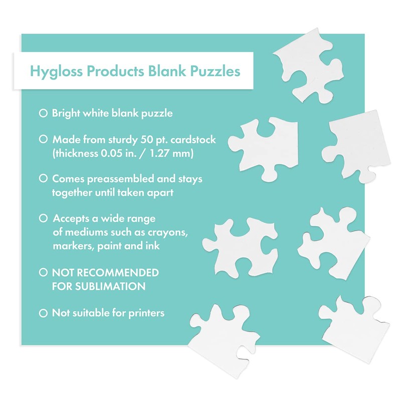 - MADE IN THE USA – The Hygloss Blank Jigsaw is designed and manufactured right here in the USA. Combine fun with a nice challenge when you buy these puzzles! Please note they are NOT for sublimation.