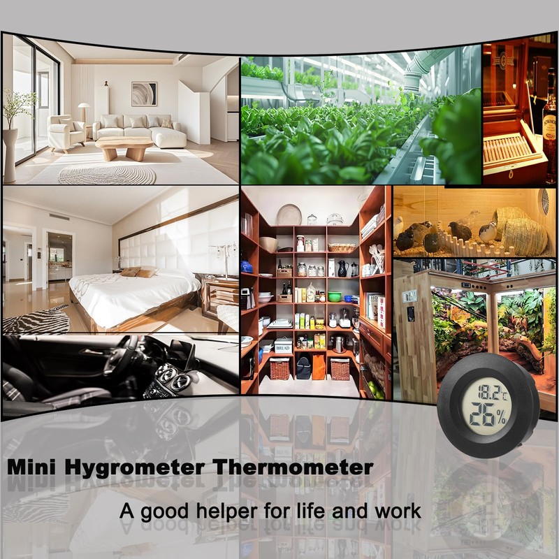 - 【Mini Size 】This mini hygrometer’s size information: Diameter:1.7in/46mm Thickness:0.6in/15mm. Small and light.Save space.Easy to carry.